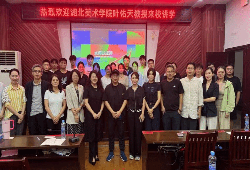 讲座中,叶佑天教授结合自己大量的作品,以中国传统“柔性表达”哲学为理论根基,借“水”的“柔弱胜刚强”“无为而无不为”隐喻,拆解艺术突围的可行路径。深入剖析AI时代艺术创作的五大关键命题:以“人工干预”破解AI算法导致的文化符号扁平化,用传统“留白”智慧消解数字技术“视觉轰炸”,将线条韵律、意境营造等传统“柔性”基因转化为数字语言,以“慢”“静”“深”的节奏对抗碎片化焦虑,凭文化内涵赋予作品持久生命力。他指出AI对艺术设计的影响并非简单的“替代”,而是推动行业从“技术辅助创作”向“生态重构”的深层演进。在这场变革中,技术是效率工具,而人类的审美判断、文化理解与落地智慧,仍是定义设计价值的核心所在。
