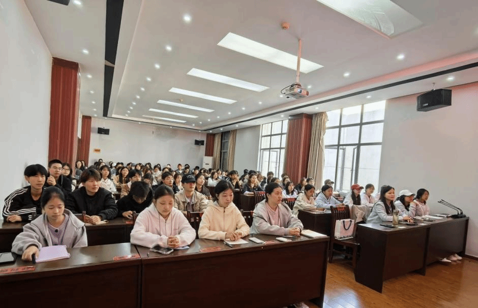 李琍教授以清晰的逻辑、通俗的语言,既解答了师生们对 AI 时代的困惑,也引导大家重新审视工作、社交与精神追求的意义。(文 董萌/图 袁雅思)