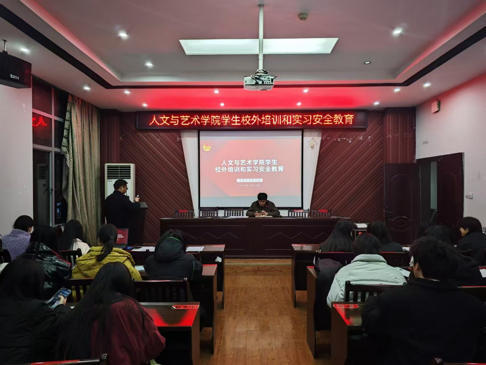 12月18日,人文与艺术学院在艺术楼A230会议室举办了主题为“校外培训和实习安全教育”的学生干部大会。此次大会旨在针对前期摸排报送的校外培训学生名单和即将有实习计划的学生,开展一次全面而深入的安全教育活动,增强学生的安全意识。会议由辅导员马浩哲主持,在外培训、实习学生以及学院学生干部参加,共计120余人。