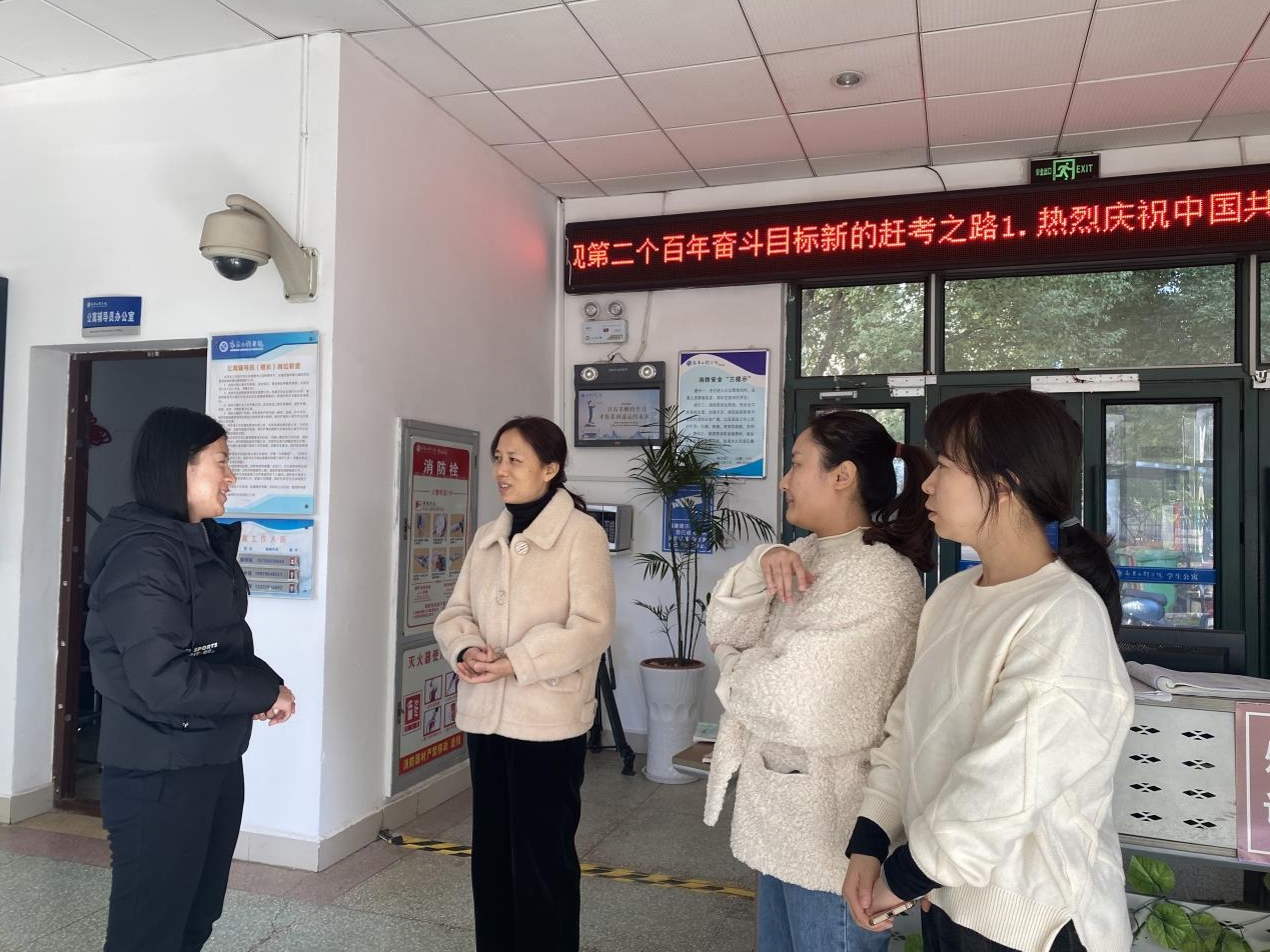 为给我院学生营造安全、健康的生活氛围,查找并排除同学们生活中的安全隐患,11月30日下午,我院党委副书记王锐、组织员蒿佳杭、团委副书记丁蓓蒂、辅导员张淑华来到学4栋深入学生寝室开展安全隐患排查工作,对我院学生寝室卫生、寝室内大功率电器使用情况、寝室安全隐患等现象进行了仔细的检查。