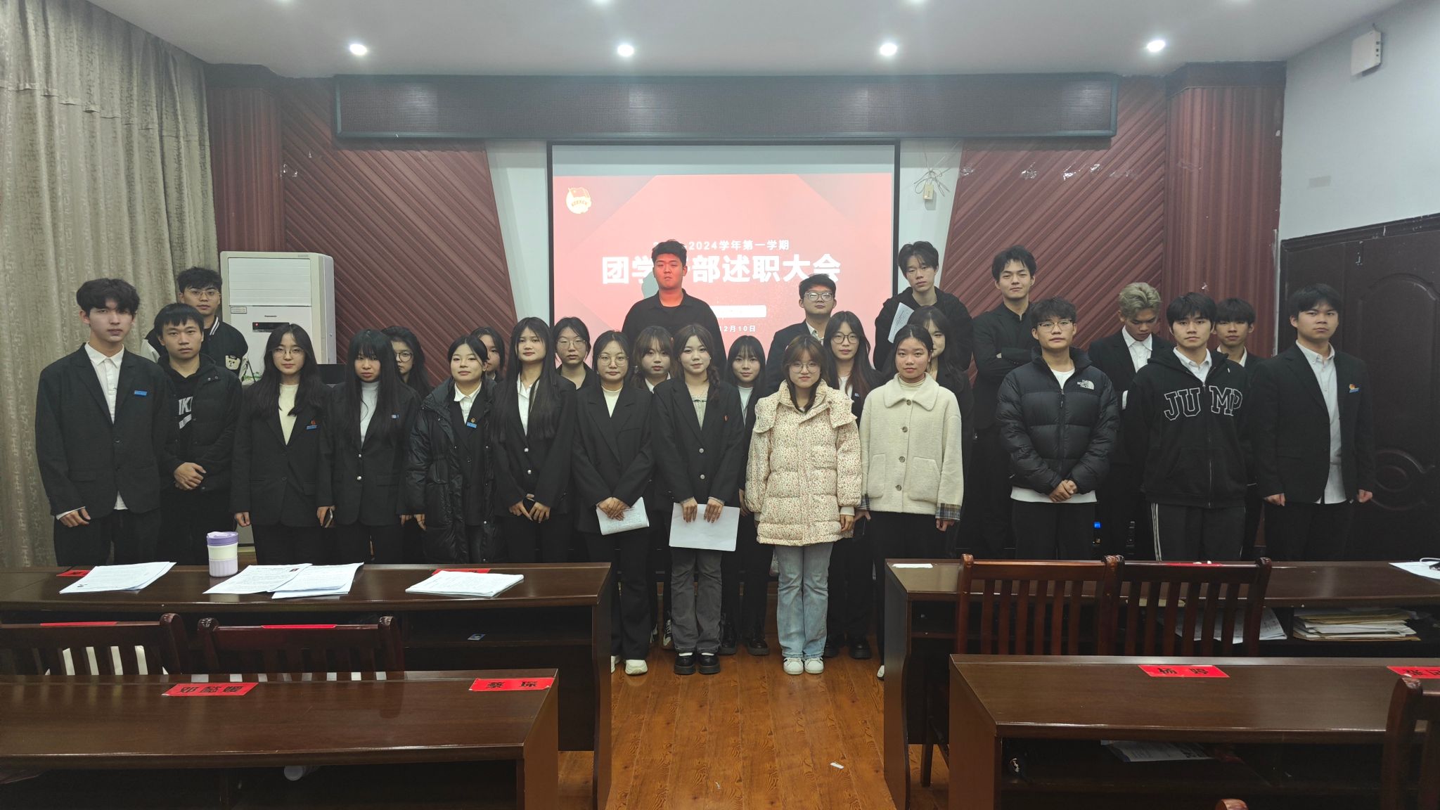为总结本学期整体工作情况,同时加快学期末各项安排的进行,进一步提高各部门团结协作的能力,明确下一阶段的目标。12月10日晚上七点,人文与艺术学院于艺术楼A230举行2023——2024学年第一学期团学干部述职大会。