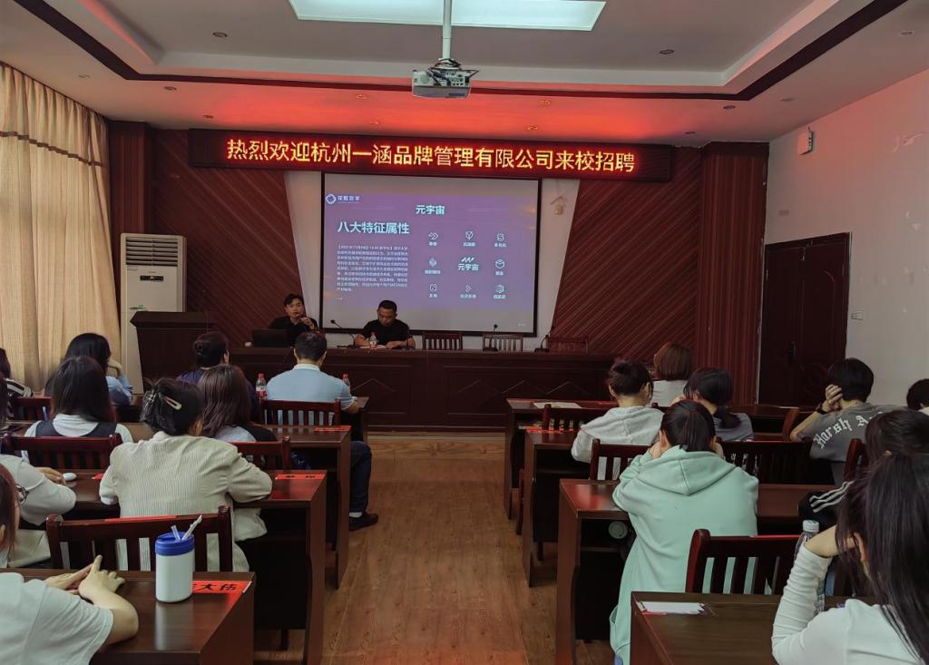 江新楠介绍了公司在元宇宙、电商直播、数字经济等方面的布局和发展,希望双方能够在推动校企双方优势互补、成果共建、平台共享等方面继续深入合作。公司还进行了现场毕业生招聘宣讲及面试。