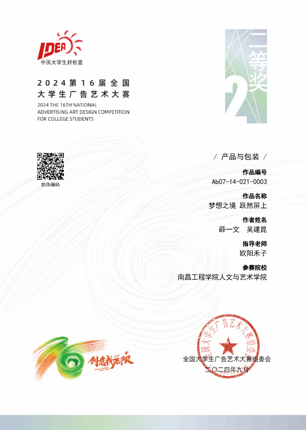 近日,全国大学生广告艺术大赛组委会正式公布第16届国赛获奖结果。我校在本次比赛中取得优异成绩,共获得国赛一等奖1项,二等奖1项;获得33项省奖,其中一等奖3项,二等奖14项,三等奖16项,创我校在该项比赛的历史最好成绩。