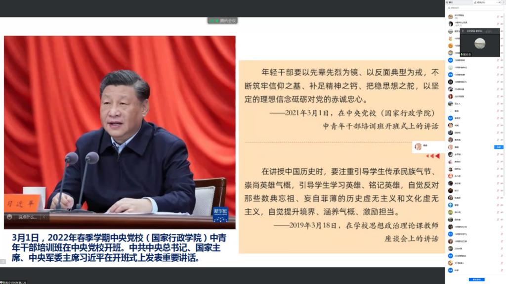4月5日下午,校纪委书记殷安全通过腾讯会议为人文与艺术学院师生上了一堂“铭记历史缅怀先烈 珍爱和平开创未来”清明节线上祭扫革命先烈思政课,人文与艺术学院党委书记熊华林等四位老师和19网络与新媒体专业全体同学参加本次课程。