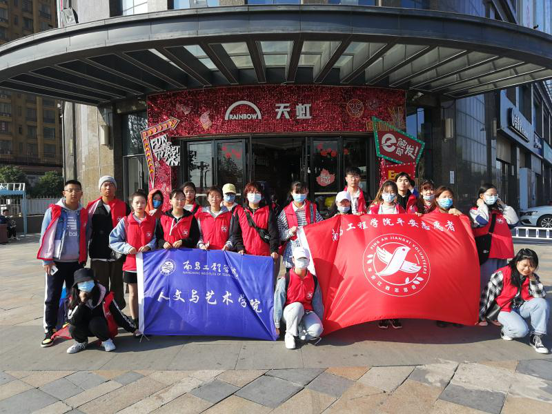 为维护社会稳定,营造防毒防邪教的良好社会氛围,人文与艺术学院于2020年11月8日,前往酷加天虹发起了“防毒防邪教”平安宣传志愿服务活动,学院师生共计32人参加。