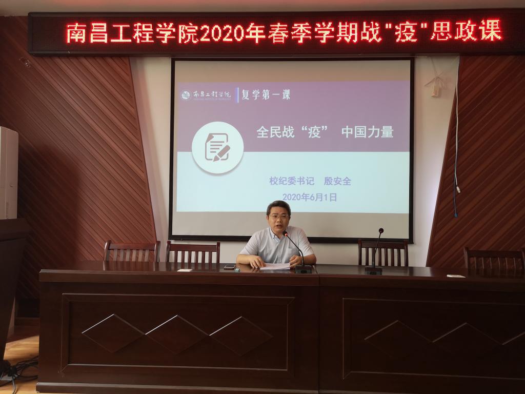 课堂上,殷安全以“人民至上 总书记亲自部署指挥”“中国治理 打一场抗疫人民战争”“万众一心 凝聚起14亿人的力量”“江西力量 紧跟中央全国一盘棋”“直面大考 疫情带来的思考启迪”等五个篇章为主体,详细分析当前疫情防控的国内和国际形势背景,深入讲好以习近平同志为核心的党中央在疫情防控的人民战争、总体战、阻击战中的正确领导和英明决策;结合我国疫情防控取得的决定性成果,深入讲好中国共产党的领导和中国特色社会主义制度所彰显的显著优势;通过讲述我院师生在疫情防控一线涌现出的先锋模范人物和生动事迹,深入讲好中华民族在人类历史上书写的可歌可泣的抗疫篇章;将战“疫”中的江西力量、南工元素、亲身经历有机融合,鼓励同学们充分认识我国疫情防控成就并将其转化到努力学习、建设高水平水利特色大学的兴校实践中来,转化到立志报国、投身实现中华民族伟大复兴的伟大征程中来。