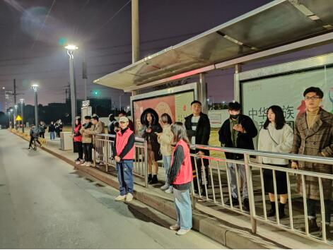 寒冷的天气更显顽强的毅力,活动期间,志愿者们不畏严寒,走出校园向市民普及安全、维权知识,并在各地点维持现场秩序,宣扬了社会主义核心价值观的内容和意义,充分展现了当代大学生的青春风貌。市民们积极响应,志愿服务活动收效甚好。学生志愿者们为自己可以在维护社会治安,提高社会群众的安全防范意识上献出自己的力量表示十分荣幸。夜幕降临,南昌县公交站人流稀松,最后本次志愿者在公交站旁合影,我院党员志愿服务活动暂落帷幕。