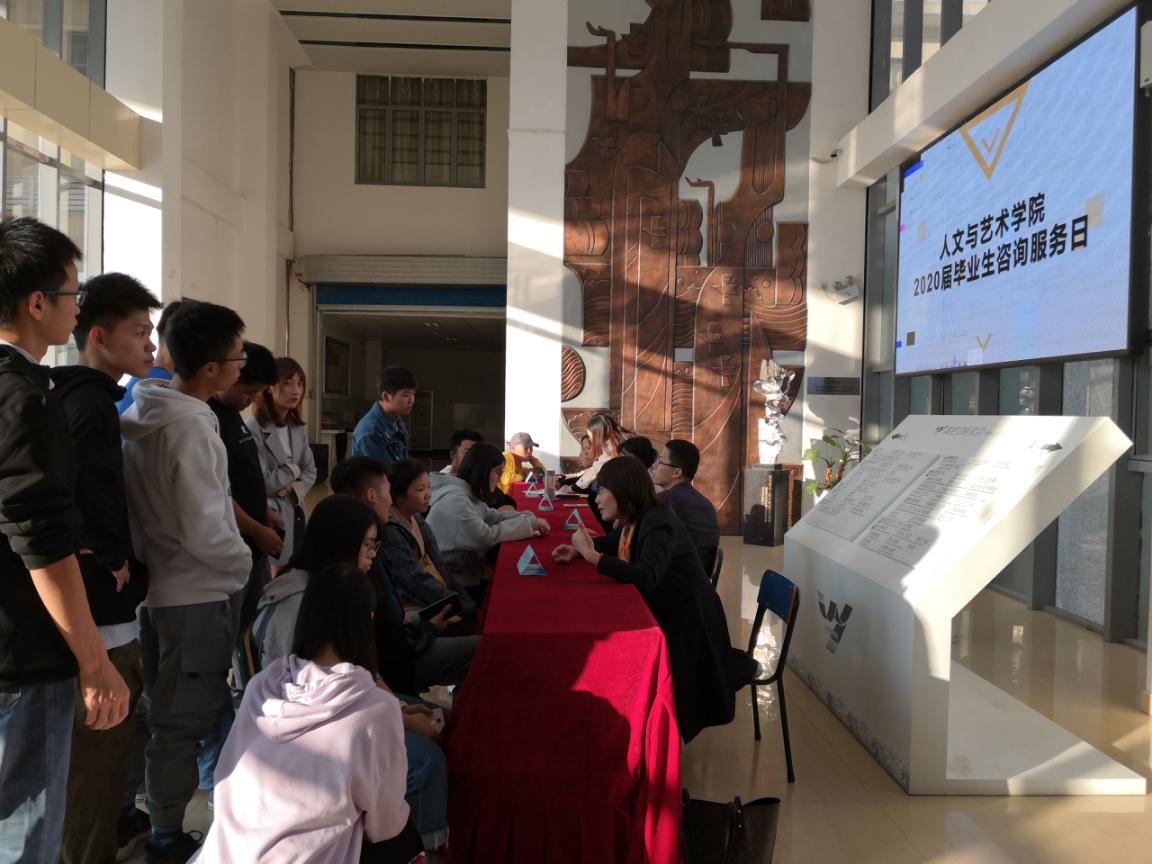 根据学校“不忘初心、牢记使命”主题教育工作部署,人文与艺术学院党委以毕业生的切实需求为出发点,于11月5日下午在艺术楼大厅开展毕业生咨询服务日活动。