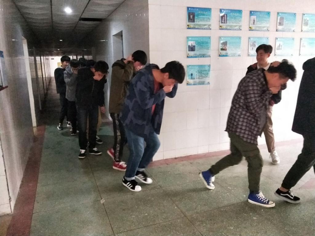 中午十二点,演练开始。模拟楼栋A2层着火,消防控制室值班人员发现火情后,立即进行上报,启动消防应急疏散预案。在这之后,楼干相关人员指挥学生安全离开。在此次消防演习结束后,针对大家在宿舍生活中存在的一些问题,部长及其相关人员还进行了详细指导。