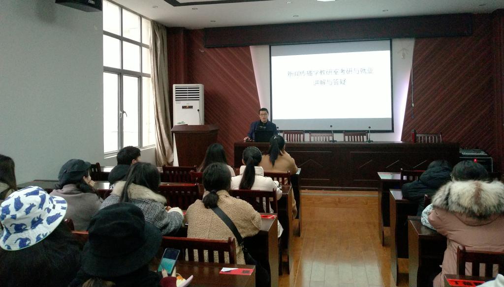 2月27日上午,我院在艺术楼A230会议室举办新闻传播学类专业考研与就业辅导答疑会。新闻传播学教研室主任张记刚、广播电视学专业负责人张冬冬、编辑出版学专业负责人赵敏及编辑出版学、广播电视学专业60余名同学参加答疑会。