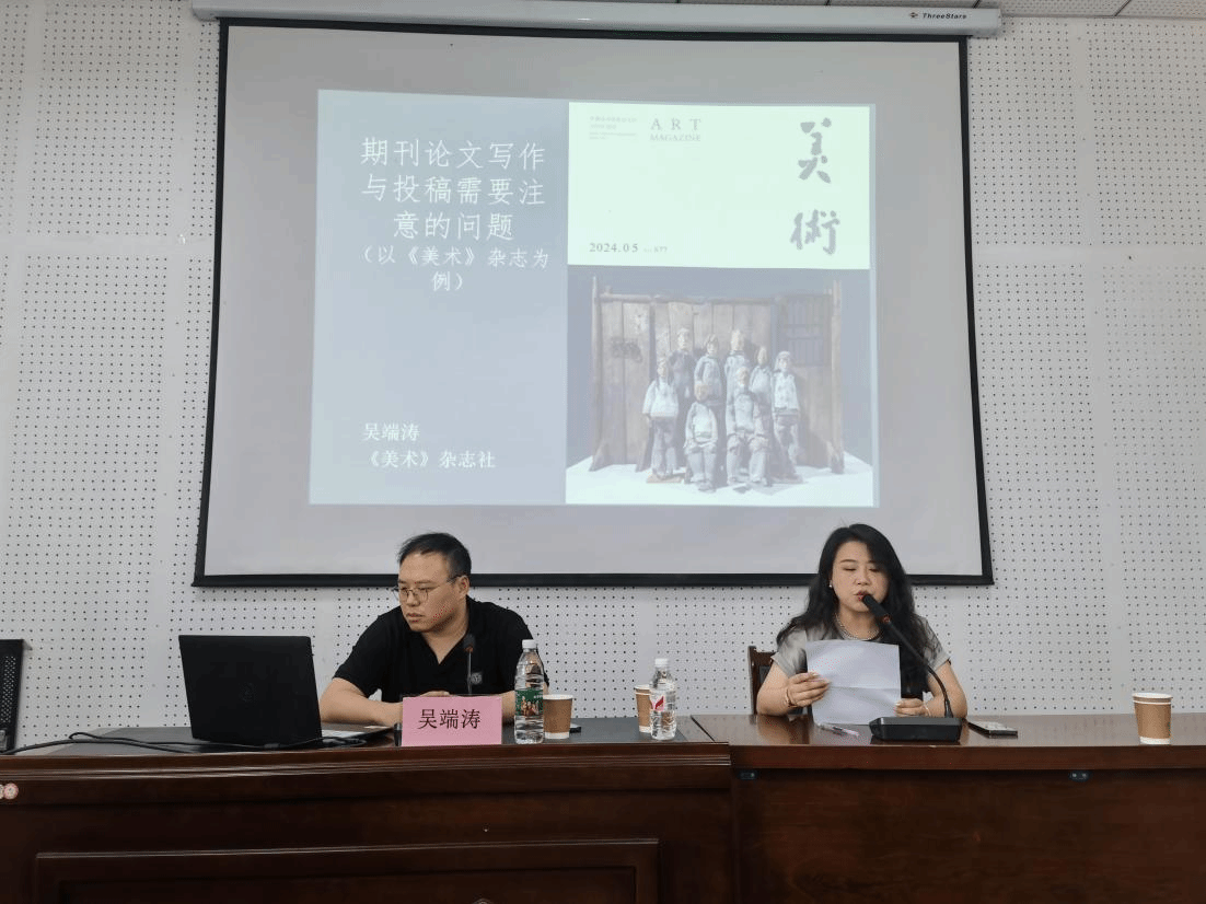 讲座中,吴主任首先介绍了期刊的起源与各种期刊分类,阐释了目前国内期刊,尤其是美术界期刊的评价体系。随后传授了期刊投稿的注意事项,告诉大家投稿应按图索骥,需仔细分析各类杂志的类型和需求。最后详细介绍了《美术》杂志的栏目、近年来的研究专题尤其是2024年的选题、投稿的格式规范等。