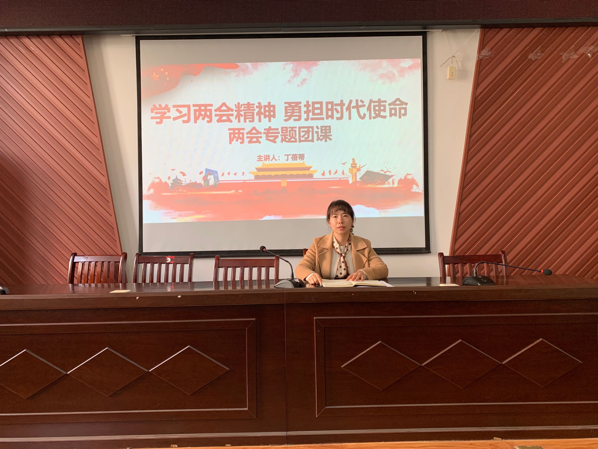 人文与艺术学院于3月20日在艺术楼A230开展两会专题团课,由学院团委书记丁蓓蒂主讲,院团委学生会学生干部代表到场学习。