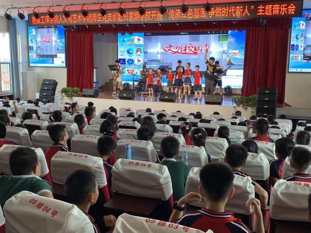 活动围绕“传承红色基因,争做时代新人”主题展开,此次活动共有三个内容,分别为:一幅画——艺术作品展,一首歌——乐队唱红歌表演、一个视频——组装“水工巧门”模型。活动中,人文与艺术学院志愿者发挥专业特长,用生动易懂的语言为它们讲解了作品构思、制作过程、作品意义;乐队表演的方式为学校同学带来一场红歌音乐会;学院党员教师李前程带领志愿者教小学生们制作完成“水工巧门”拼装模型。田家炳学校的同学们充满热情和好奇心参与活动,在聆听中、学习中、实践中收获了丰富的艺术知识和创意想法、悦耳的视听体验、团队合作能力、并切实感受到艺术陶冶情操的学科功能,志愿服务活动结束后对活动好评不断。